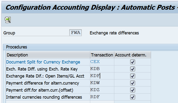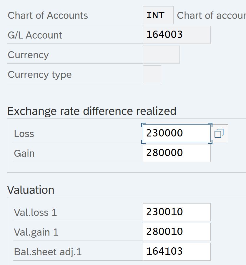 Path: SPRO- Financial Accounting (New) – General Ledger Accounting (New) – Periodic Processing – Valuate- Foreign Currency Valuation – Automatic Posting for foreign currency valuation