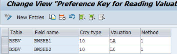Path: SPRO- Financial Accounting (New) – General Ledger Accounting (New) – Periodic Processing – Valuate – Define Valuation Methods