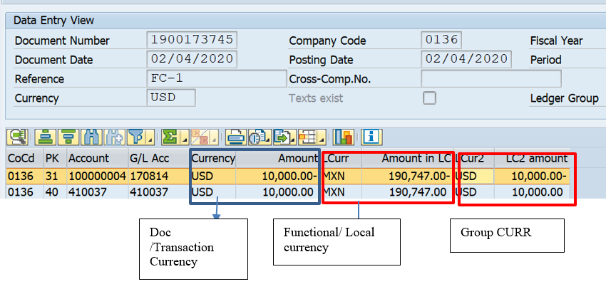 • Functional Currency: Currency of the economic environment in which the entity operates. In case of SAP functional currency is generally company code / local currency of the entity (In this case company Code). All assets, liabilities and operations of foreign entity should be measured in functional currency