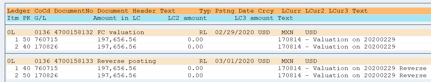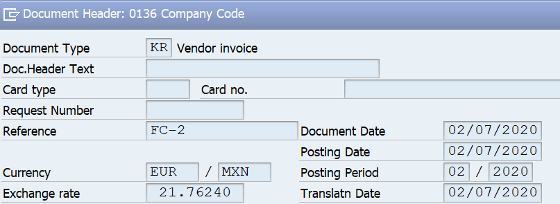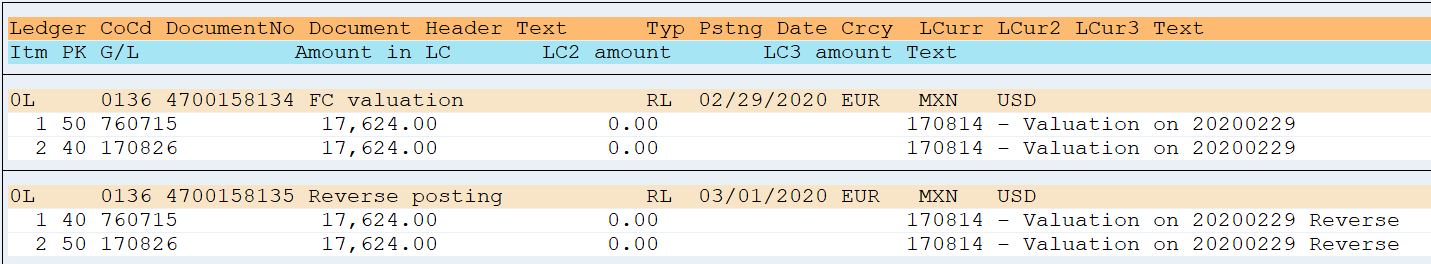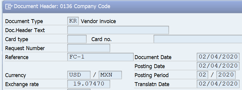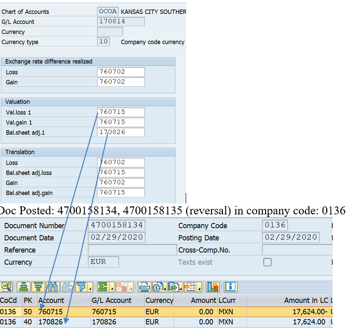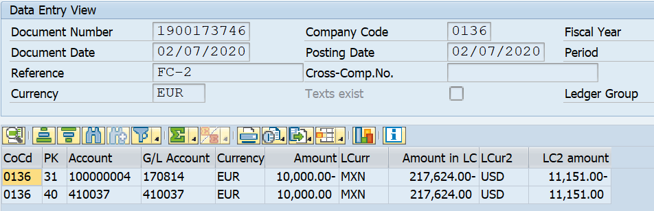 Post to company code 0136 (Co. Code currency MXN, Group/ Reporting currency USD) in EURO