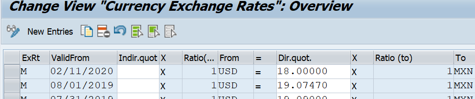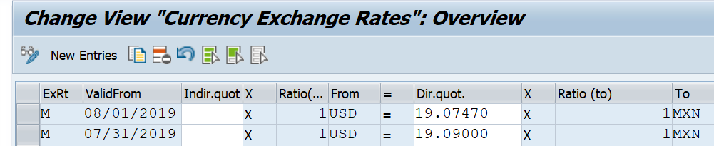 Enter Exchange Rate for Exchange Rate type ‘M’
