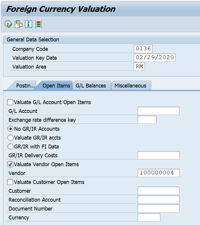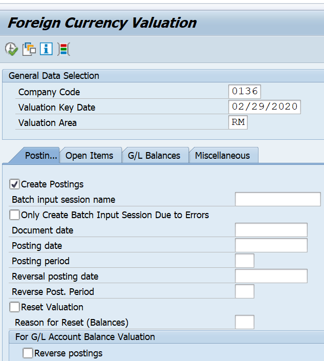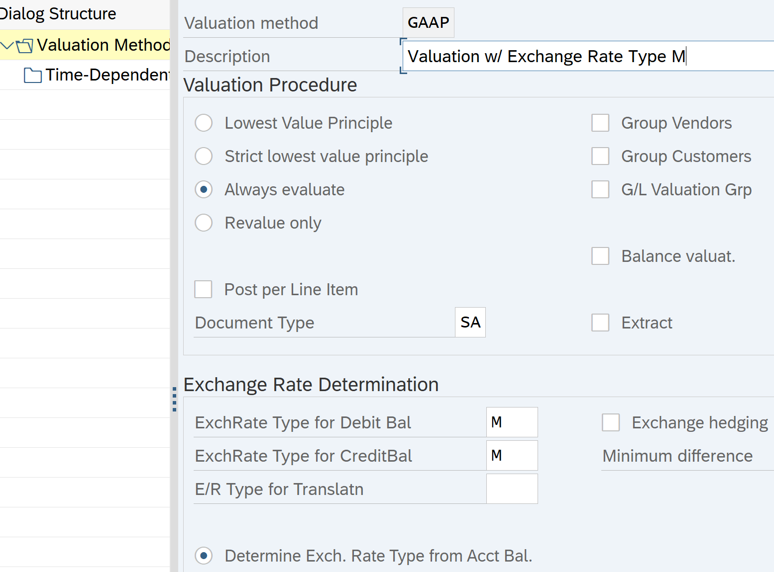 • Lowest Value Principle: If selected valuation is done only if the exchange rate difference results in exchange rate loss. Valuation posted only if giving negative result