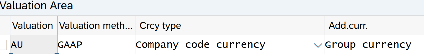 Path: SPRO- Financial Accounting (New) – General Ledger Accounting (New) – Periodic Processing – Valuate- Define Valuation Areas