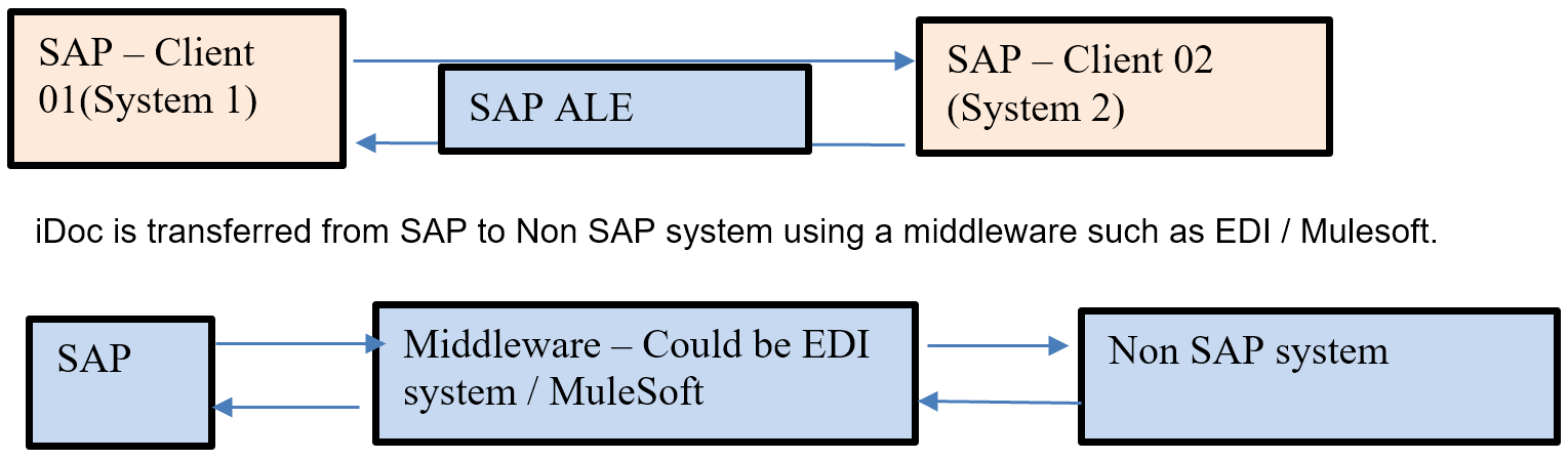iDoc is transferred from SAP to another SAP system using SAP’s ALE technology.
