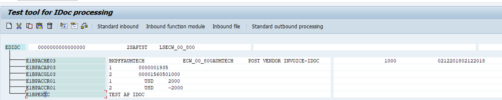 | Post Vendor Invoice | ACC_INVOICE_RECEIPT03 | ACC_INVOICE_RECEIPT | Inbound |