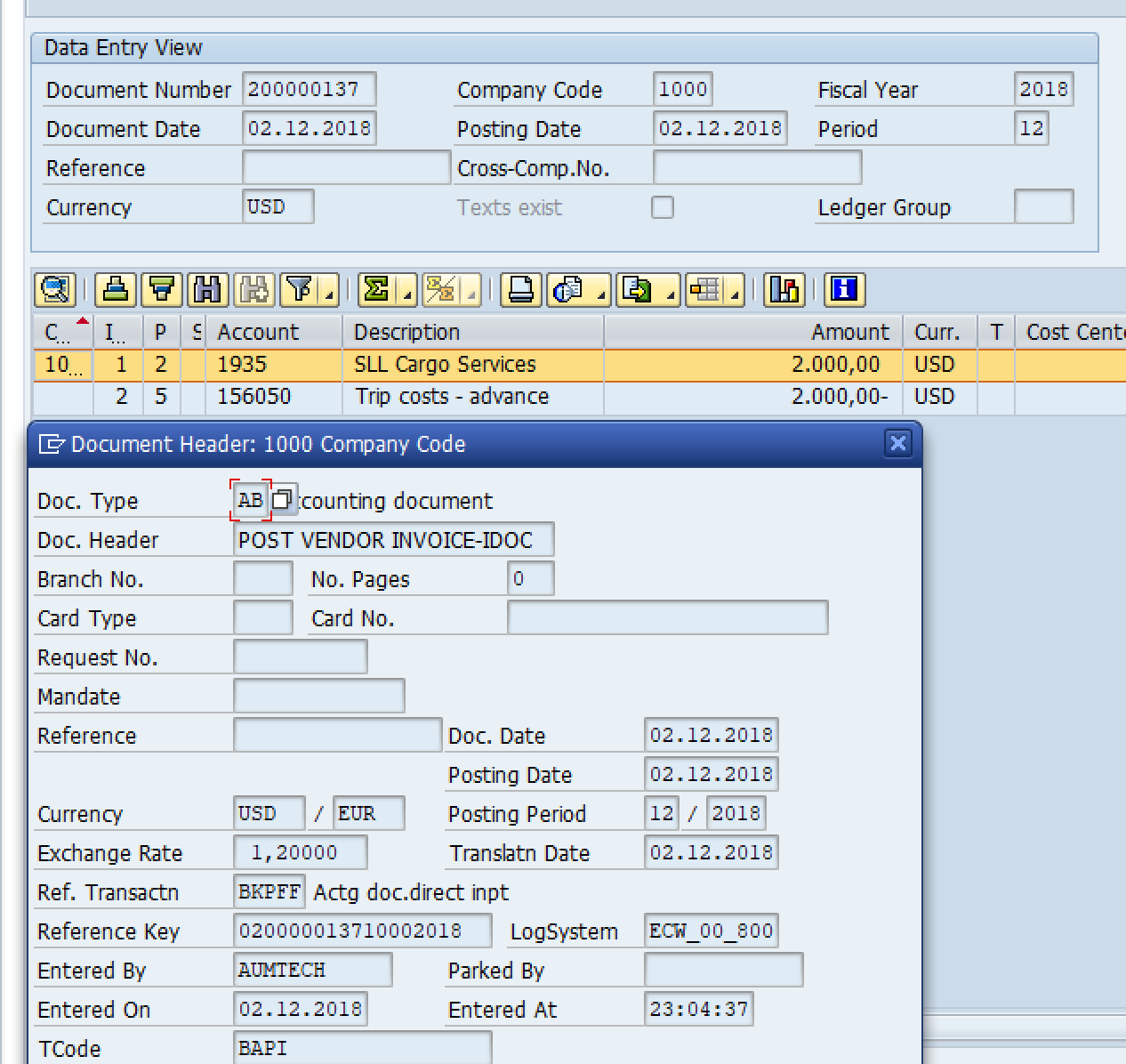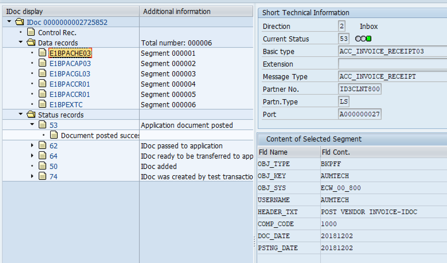 Verify the Inbound Vendor invoice posted through iDoc in WE02