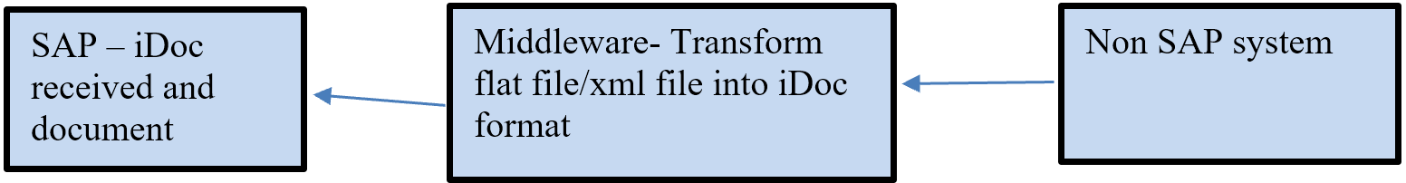 An outbound iDoc is triggered in SAP. From SAP it goes to middleware which could be EDI system or Muelsoft or any other middleware system. In case the receiving system is a non SAP system Middleware transform the iDoc into an XML / flat file and feeds it into the receiving system.