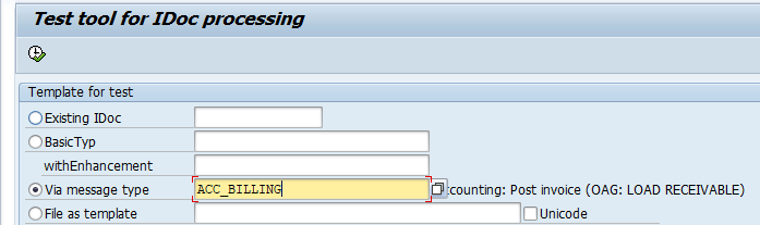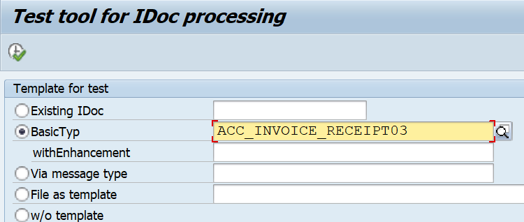 We can use transaction code WE19 to test iDocs. Enter the details as shown below: