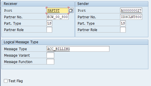 In the next screen enter iDoc message type ACC_INVOICE_RECEIPT and other details as shown below