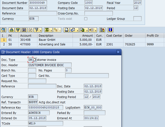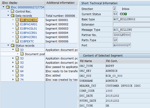 Verify the Inbound Customer invoice posted through iDoc in WE02