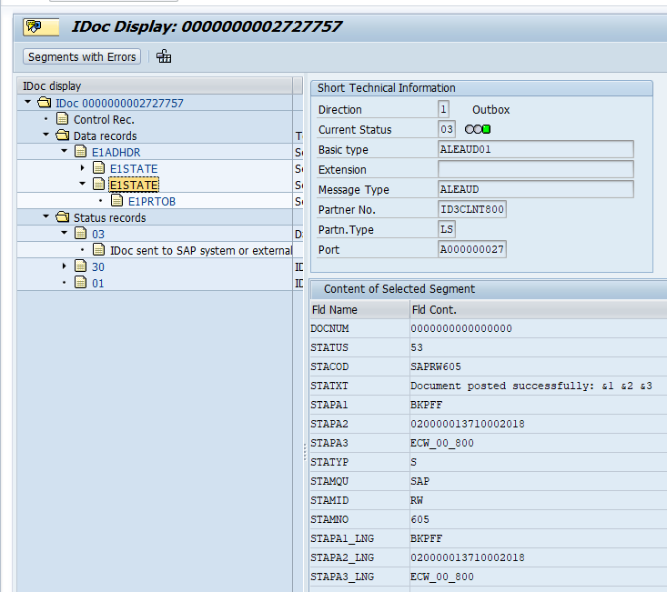 | Audit confirmation iDoc | ALEAUD01 | ALEAUD | Inbound |