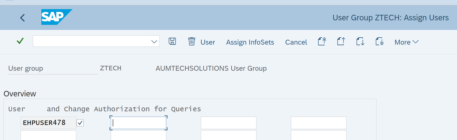 Enter the InfoSet name created above and click on “User Group Assignment” button.