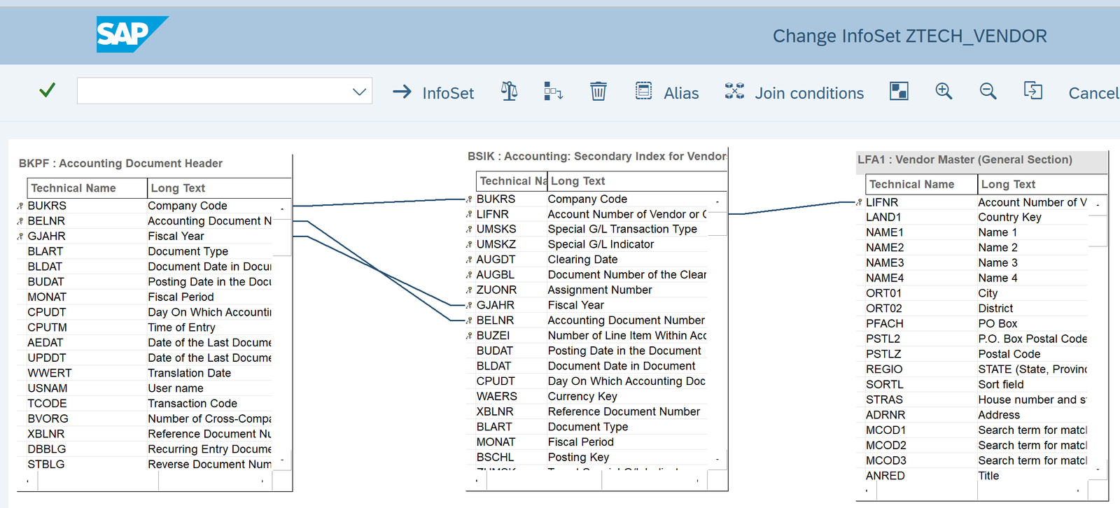 Select the infoset created in earlier steps, i.e ZTECH_VENDOR as shown below