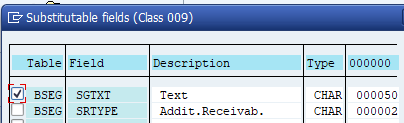 Press step button, then tick the field into which you want to substitute a value(for this example is BSEG- SGTXT).