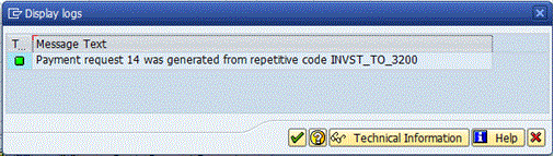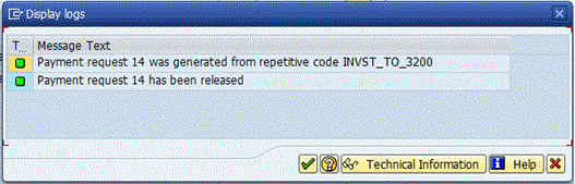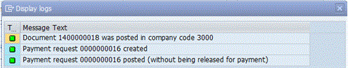 Figure 15 shows the payment request number created and the FI document number created. Click the enter icon (not shown).