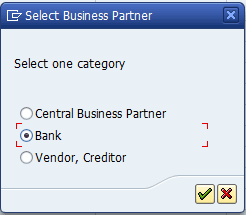 The system then displays the pop-up screen shown in Figure 2. To create a business partner repetitive template, select the Central Business Partner radio button. To create a bank-to-bank repetitive code template select the Bank radio button.