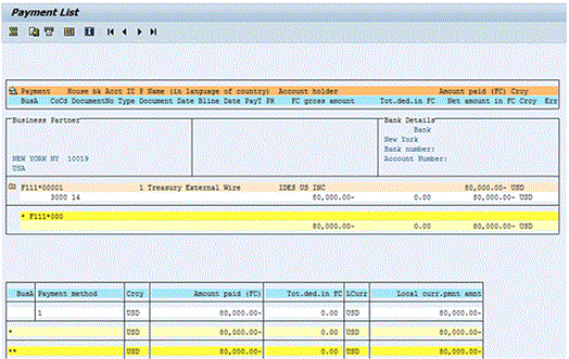 (Note: When you are making payments to customers and vendors using the Treasury payment program, the customer and vendor bank details are used, but the open invoice is not cleared.)