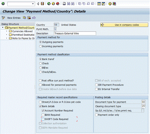 For my use case scenario, the following payment method needs to be defined as shown in Figure 31: 1 – Treasury External Wire.