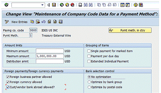 The payment methods are defined at the country level and at the company code level. Add a new payment method to the appropriate countries. Add a new payment method to your company code.