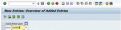 In the initial screen that the system displays (not shown), click the New Entries button. This action opens the screen shown in Figure 33. Enter the company code and payment request clearing G/L account, then click the save icon.