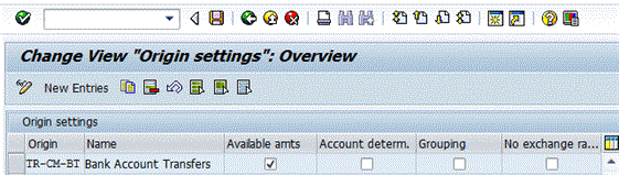 Follow IMG menu path Financial Accounting > Bank Accounting > Business Transactions > Payment Transactions > Payment Handling > Enter Origin Indicators to specify the origin settings for the TR-CM-BT origin, as shown in Figure 36.