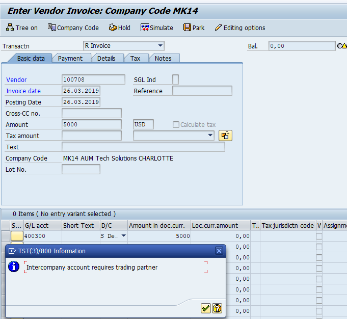 Enter Vendor Invoice. Transaction Code FB60