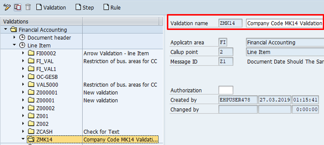 - Only one validation per company code can be defined at a call up point. However each validation can have multiple steps