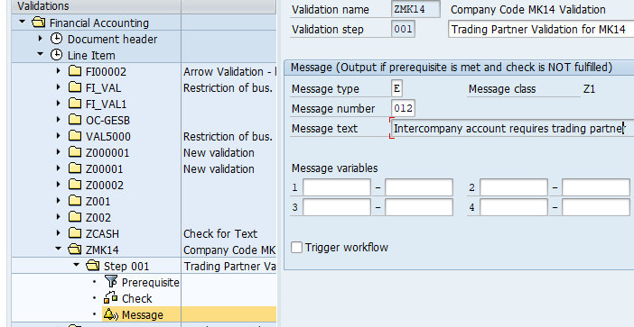 Prerequisite is “ When Company code is MK14 and GL account is in SET (GLACCOUNT), validation should be triggered